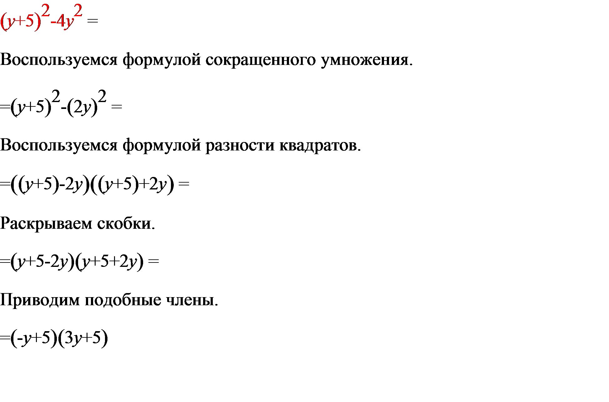 (у+5)^2-4y^2=y^2+10y+25-4y^2=10y+25-2y^2