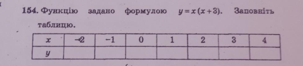 Чтобы заполнить таблицу будем подставлять x в заданную формулу и записывать для каждого подставленного x значение y, которое получили