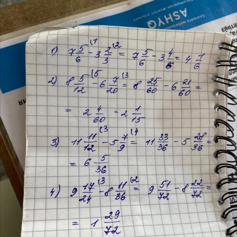 1) = 7. 5/6 - 3. 4/6 = 4. 1/6