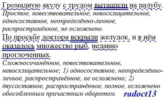Громадную акулу с трудом вытащили на палубу. По просьбе доктора вскрыли желудок, и в нём оказалось множество рыб, недавно проглоченных. Можно разобрать на листочке и скинуть