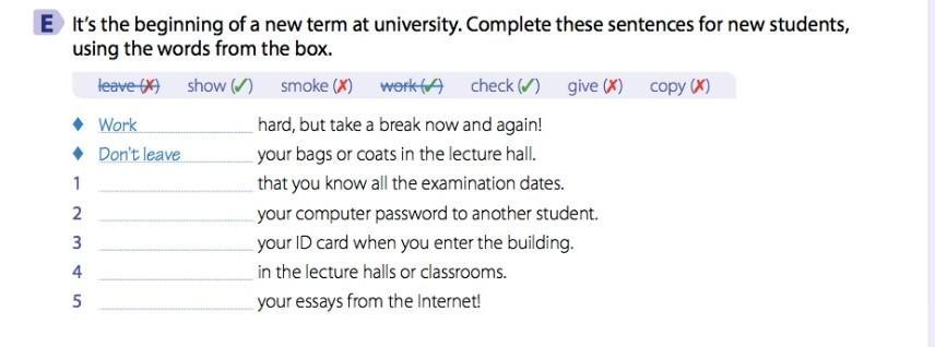 Это начало нового семестра в университете. Завершите эти предложения для новых студентов, используя слова из коробки.