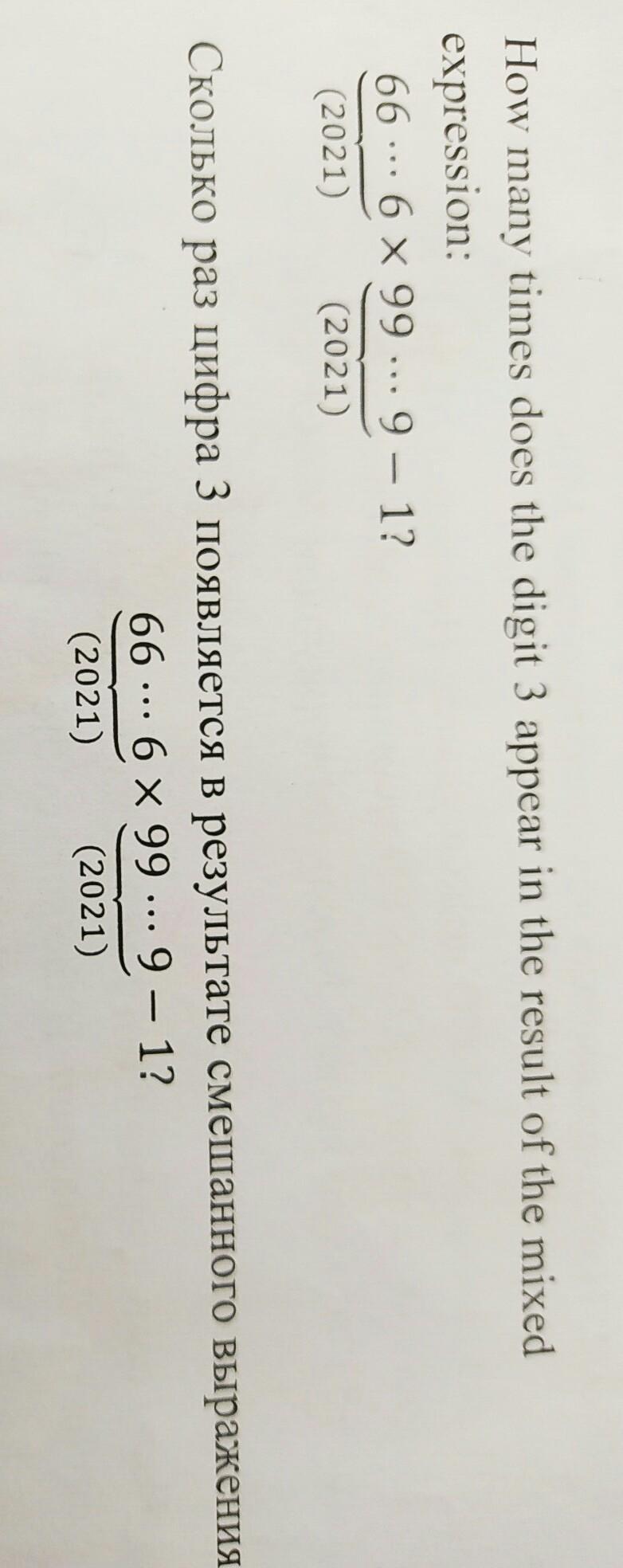 66...6 * 99...9 - 1 = 66..65333..33(2021 цифр 3)