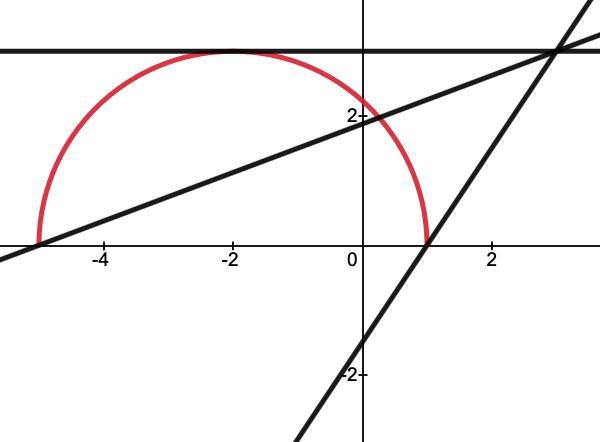 В первом случае прямая касается полуокружности в ее верхней точке, так как наибольшее значение будет . В этом случае