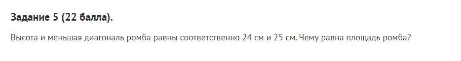 S = 1/2 * d1 * d2 = 1/2 * 24 * 25 = 300.