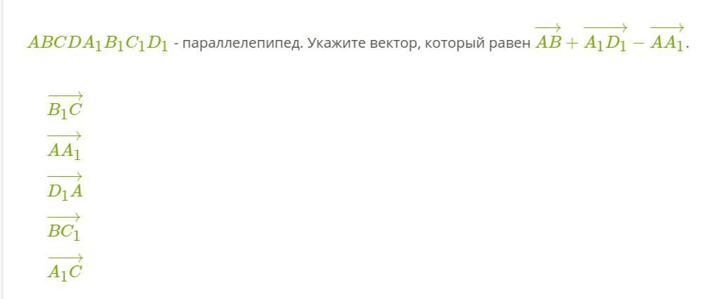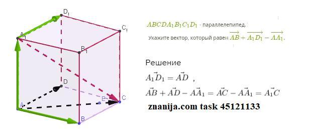 АВСDА1В1С1D1- параллелепипед . Найти АВ +А1D1-AA1 .