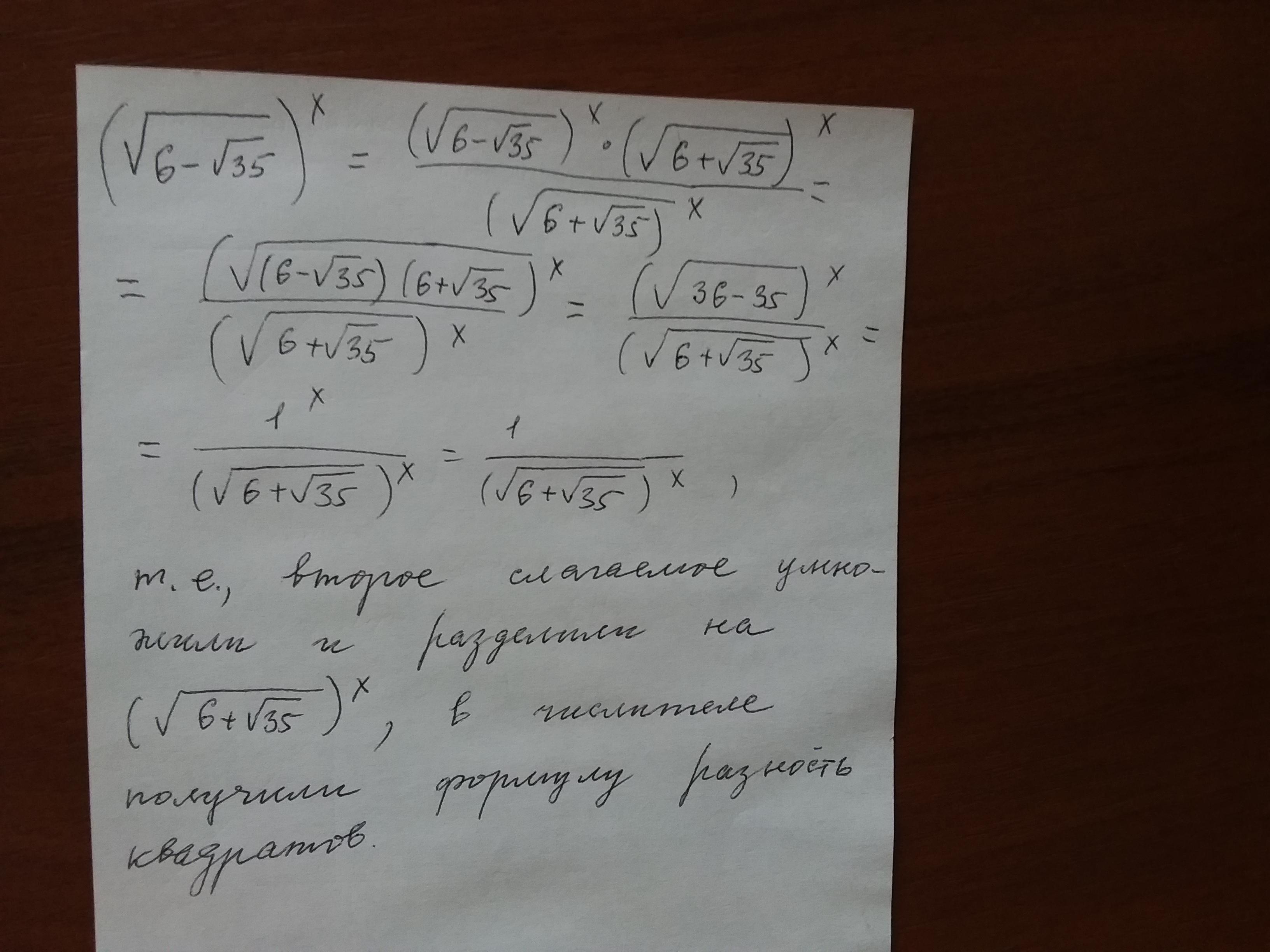 подкоренные выражения являются сопряженными иррациональными (их произведение равно единице)... (если перемножить, получится формула "разность квадратов")