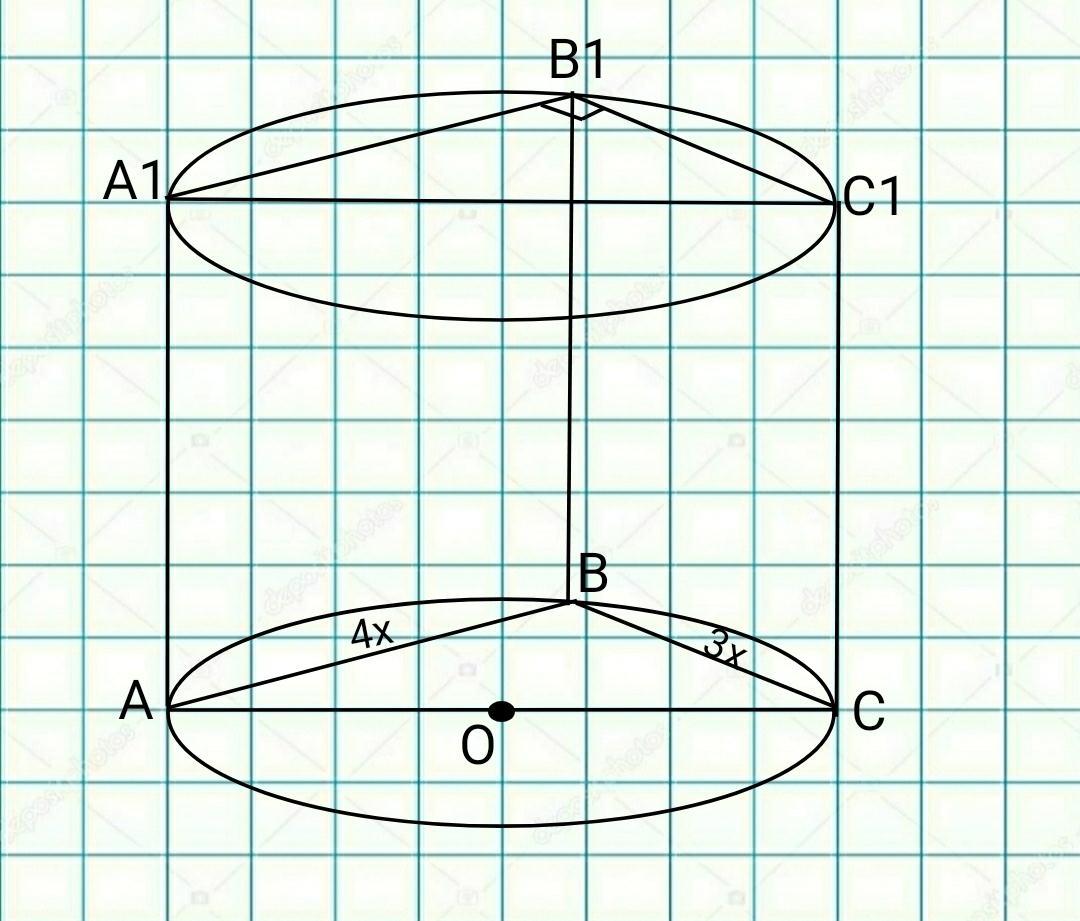 в цилиндр с радиусом 10 и площадью осевого сечения 100 вписана треугольная призма. основание призмы - прямоугольный треугольник, катеты которого относятся как 3:4. найдите объем призмы