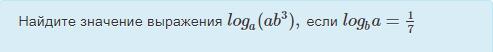 \log_{b}a=\dfrac{1}{7}\\\\\log_{a}b=\dfrac{1}{\log_{b}a }=1:\dfrac{1}{7}=7\\\\\\\log_{a}(ab^{3})=\log_{a}a+\log_{a} b^{3}=1+3\log_{a}b=1+3\cdot 7=1+21=\boxed{22}