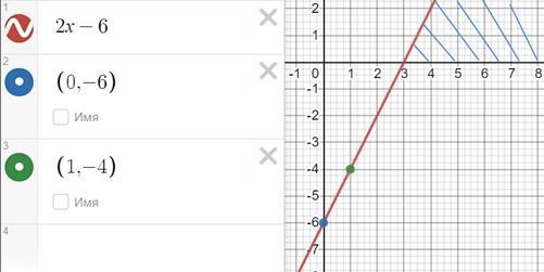 у= 2х - 6 - это прямая линия, для ее построения достаточно двух точек.