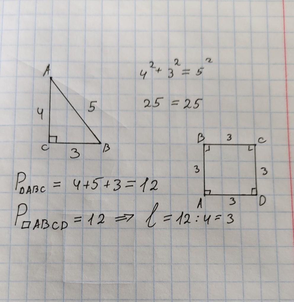 2) Периметр треугольника — сумма длин всех сторон. У квадрата все стороны равны по определению, значит наш периметр нужно разделить на 4, чтобы получить длину одной стороны