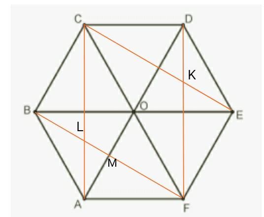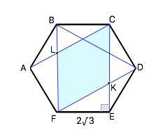 В раностороннем шестиугльнике ABCDEF проведены диагонали AC CE BF FD пересекаются в точках L и K если сторона 6-уг-ка равна 2√3 то найдите площадь четырехугольника LCKF