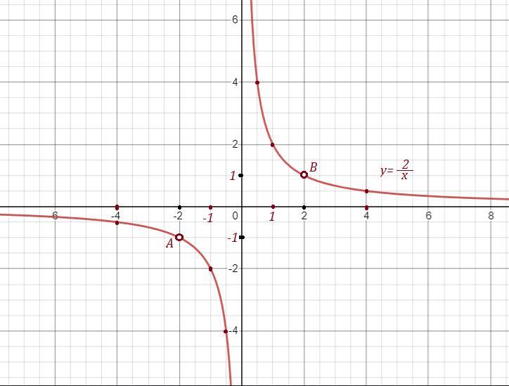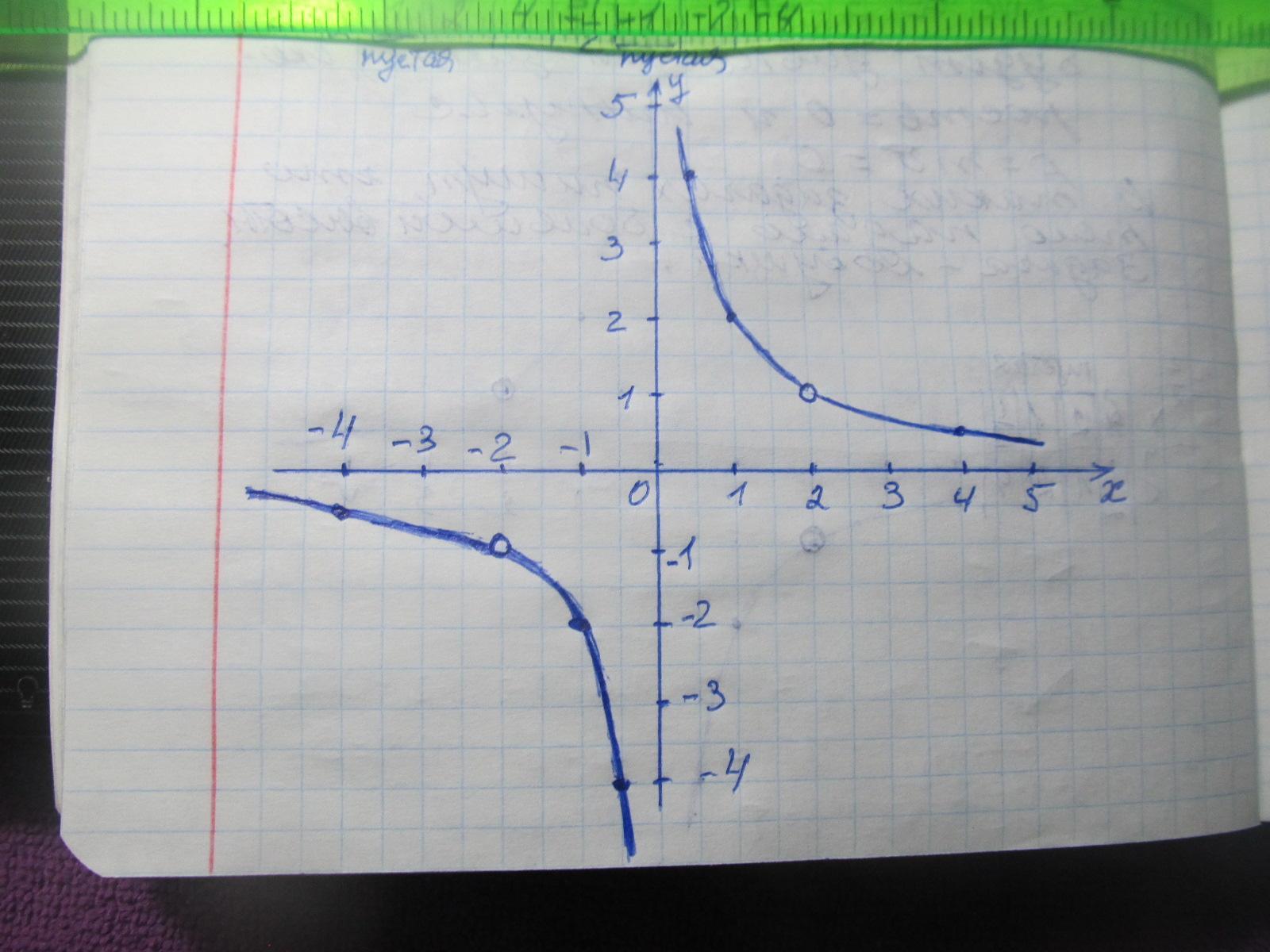 Графиком заданной функции является гипербола с двумя выколотыми точками А(-2;-1) и В(2;1) .