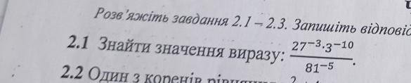 (27^-3·3^-10)/(81^-5)=(3^-9·3^-10)/(3^-20)=3^(-9-(-20))·3^-10=3^(-9+20)·3^-10=3¹¹·3^-10=3^(11-10)=3¹=3.
