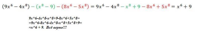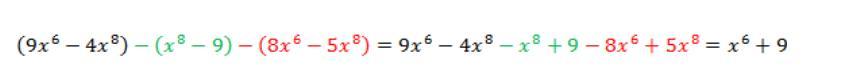 Как тут правильно? Раскрываем скобки многочлена и приводим подобные слагаемые. У меня получилось x^8 + 9, поскольку 9x^6 и 8x^6, 4x^8 и 5x^8 сократятся.
