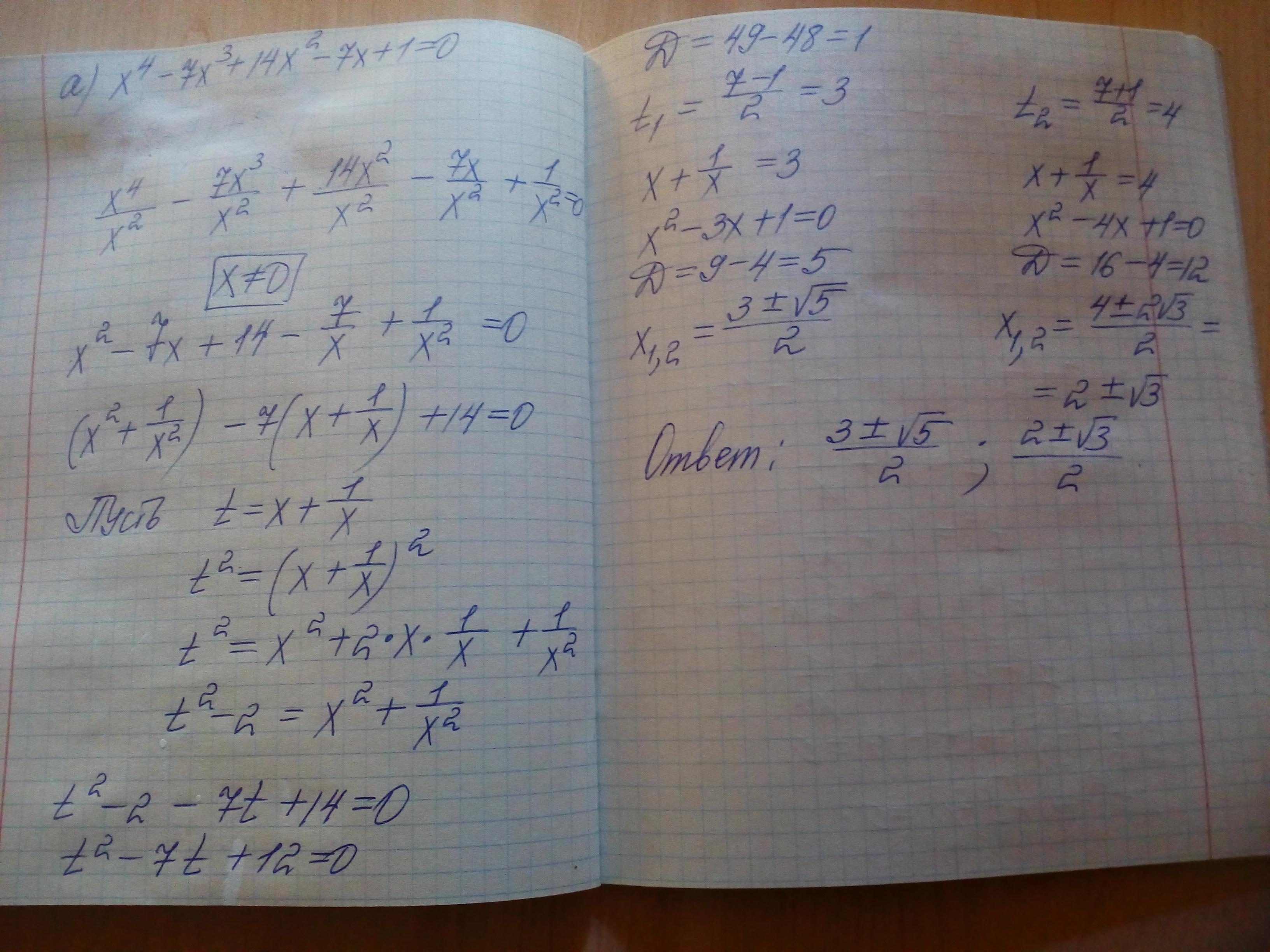 Решение уравнений высших степеней, сводящихся к квадратным.