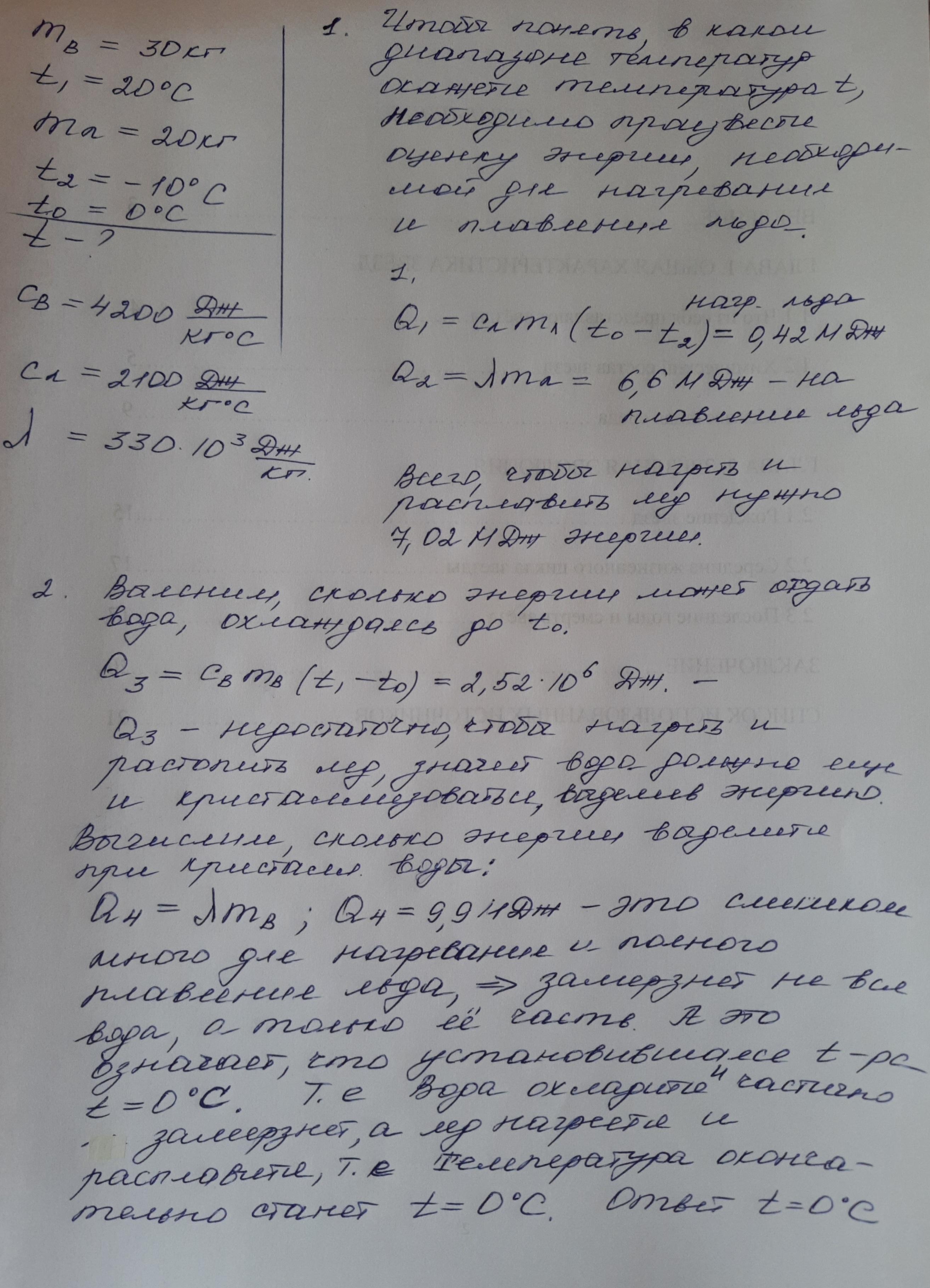 2100 Дж/(кг ∙˚С), λ = 330 кДж/кг.
