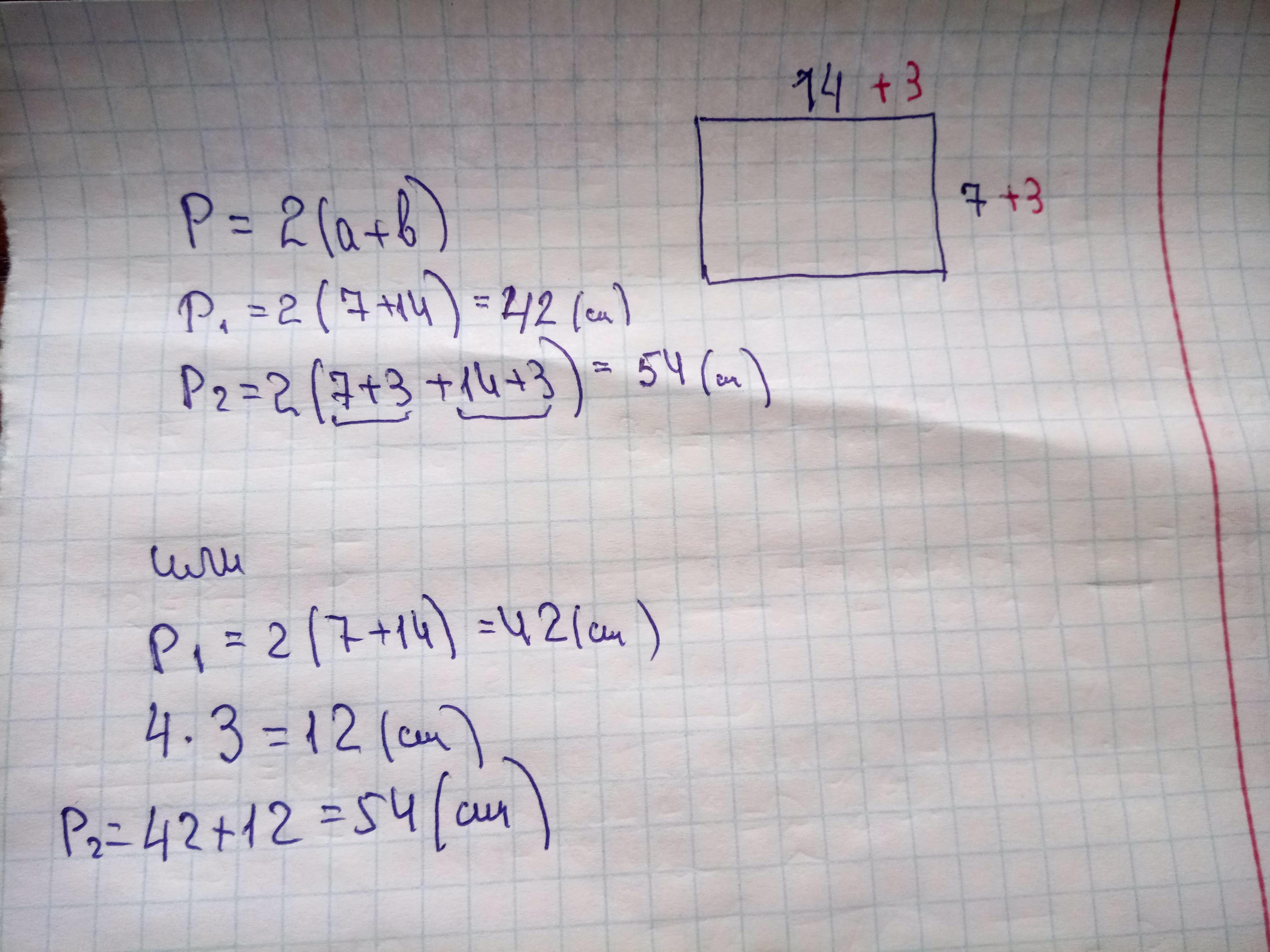 Как уменьшится периметр прямоугольника со сторонами 7 см и 14 см, если каждую из сторон увеличить на 3 см
