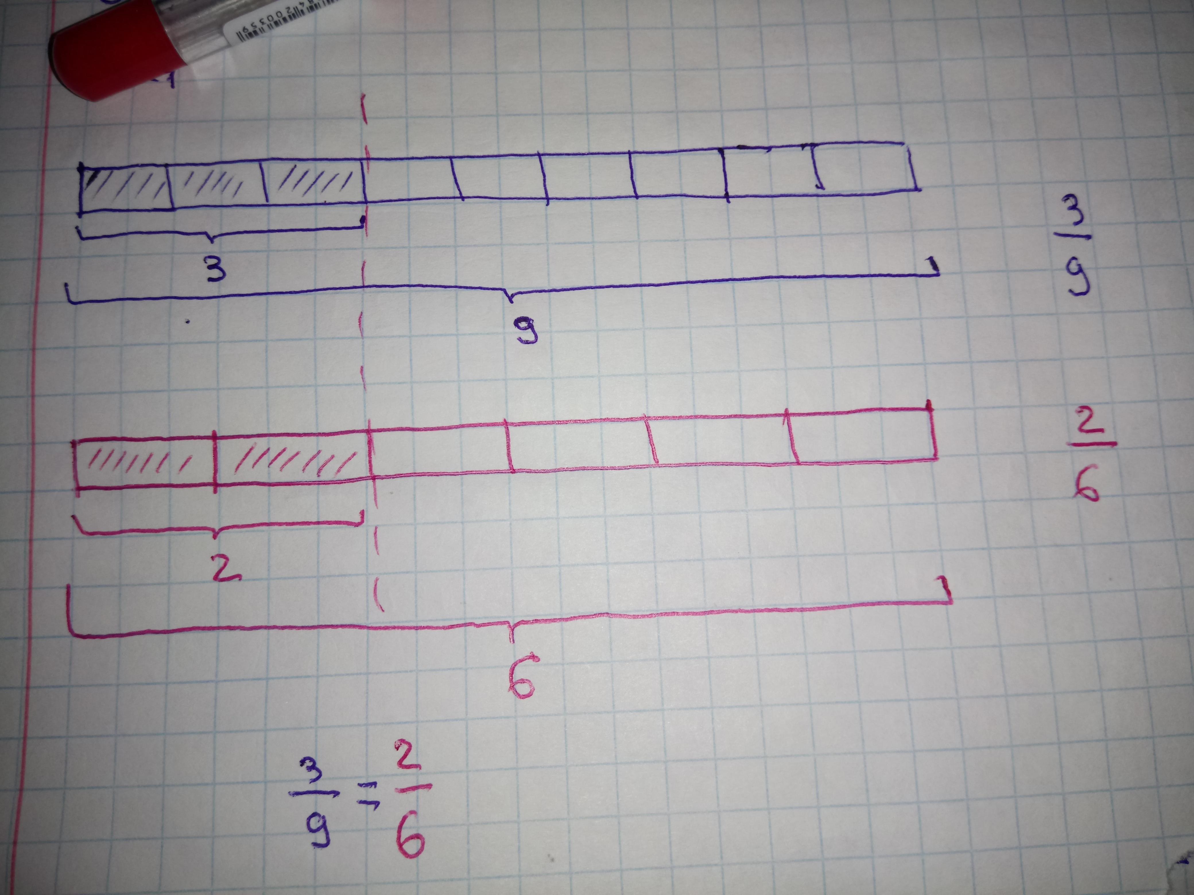 3/9 = 2/6, потому что если числитель и знаменатель разделить на одно и то же число, значение дроби не изменится; в данном случае разделили на 1,5.