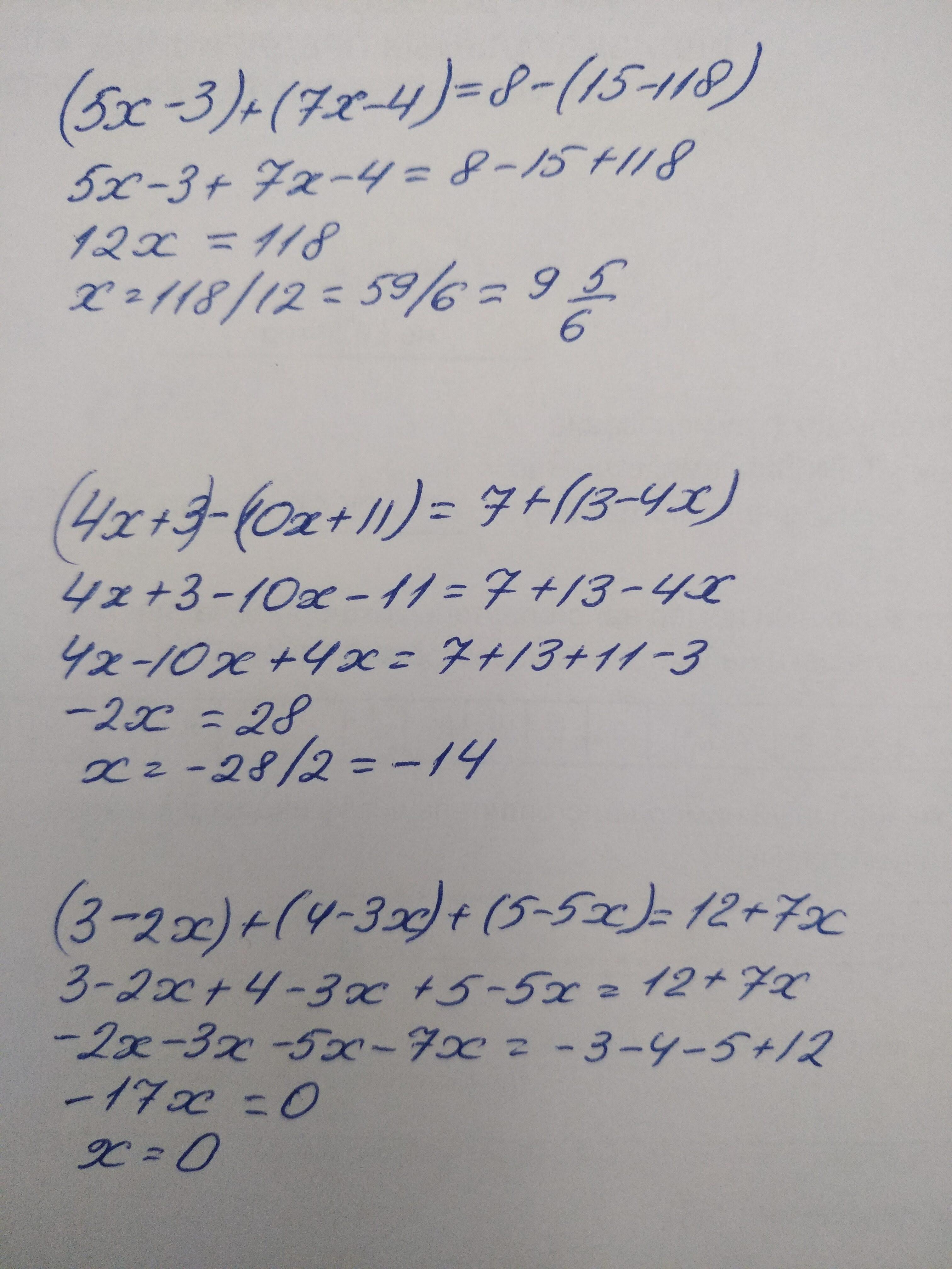 (5x-3)+(7x- 4)=8-(15-118)