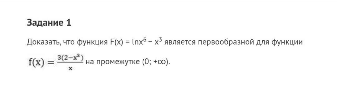 За означенням функція F(x) = lnx⁶ - x³ є первісною для функції f(x) = 3(2-x³)/x на проміжку ( 0 ; + ∞ ) . Доведено .