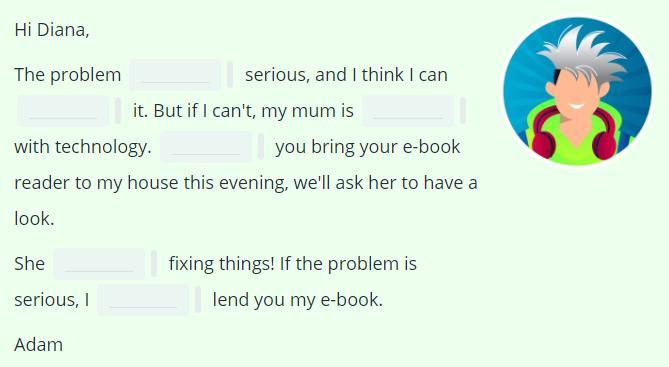 The problem doesn't sound serious, and I think I can fix it. But if I can't, my mum is brilliant with technology. If you bring your e-book reader to my house this evening, we'll ask her to have a look.