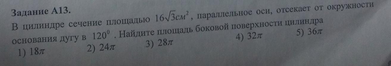 В цилиндре сечение площадью 16√3 см2, параллельное оси, отсекает от окружности основания дугу в 120 градусов. Найдите площадь боковой поверхности цилиндра