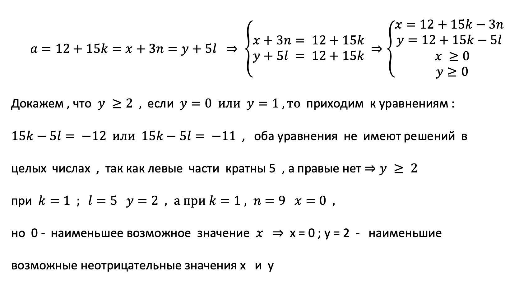 Известно, что a≡12(mod15). При каких наименьших неотрицательных X и Y выполнены сравнения a≡X(mod3) и a≡Y(mod5)?