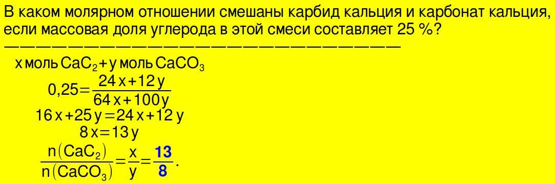 В каком молярном соотношении были смешаны карбид кальция и карбонат кальция, если массовая доля углерода в полученной смеси равна 25,0%