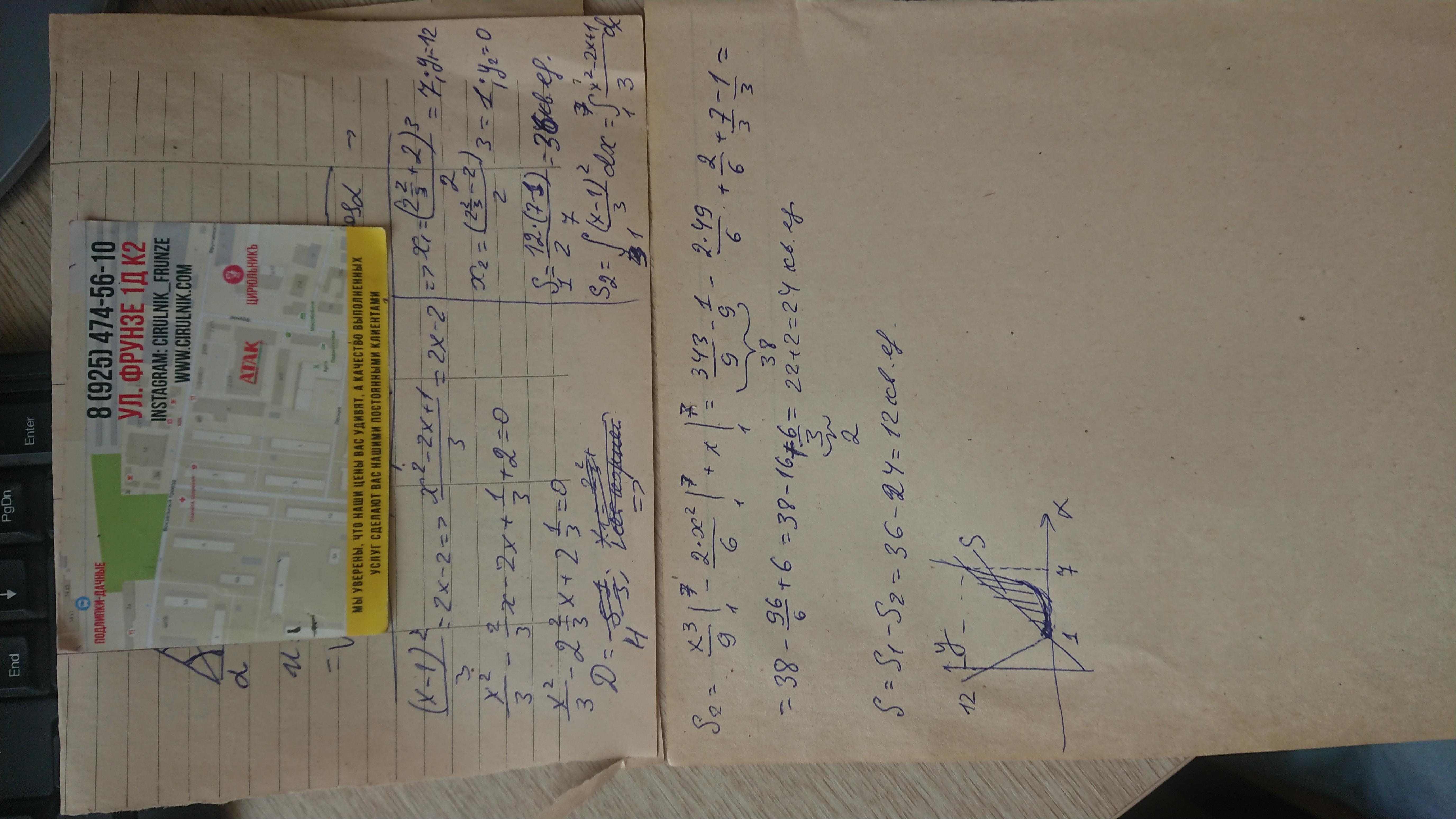 Здравствуйте, помогите решить. Вычислите площадь фигуры, ограниченной линиями. Сделайте чертёж.