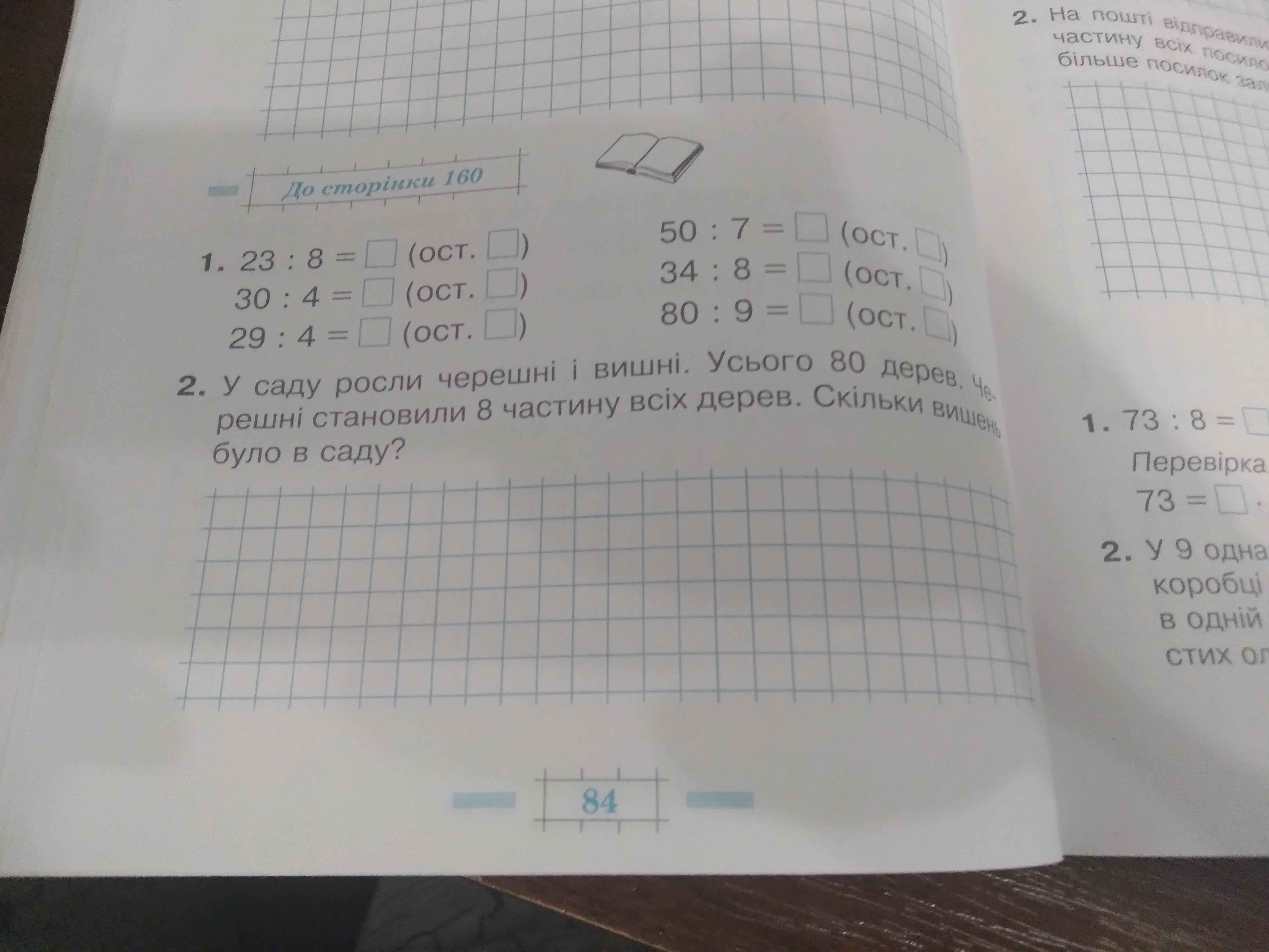 23:8=2 (ост.7); 30:4=7 (ост.2); 29:4=7 (ост.1); 50:7=7 (ост.1); 34:8=4 (ост.2);