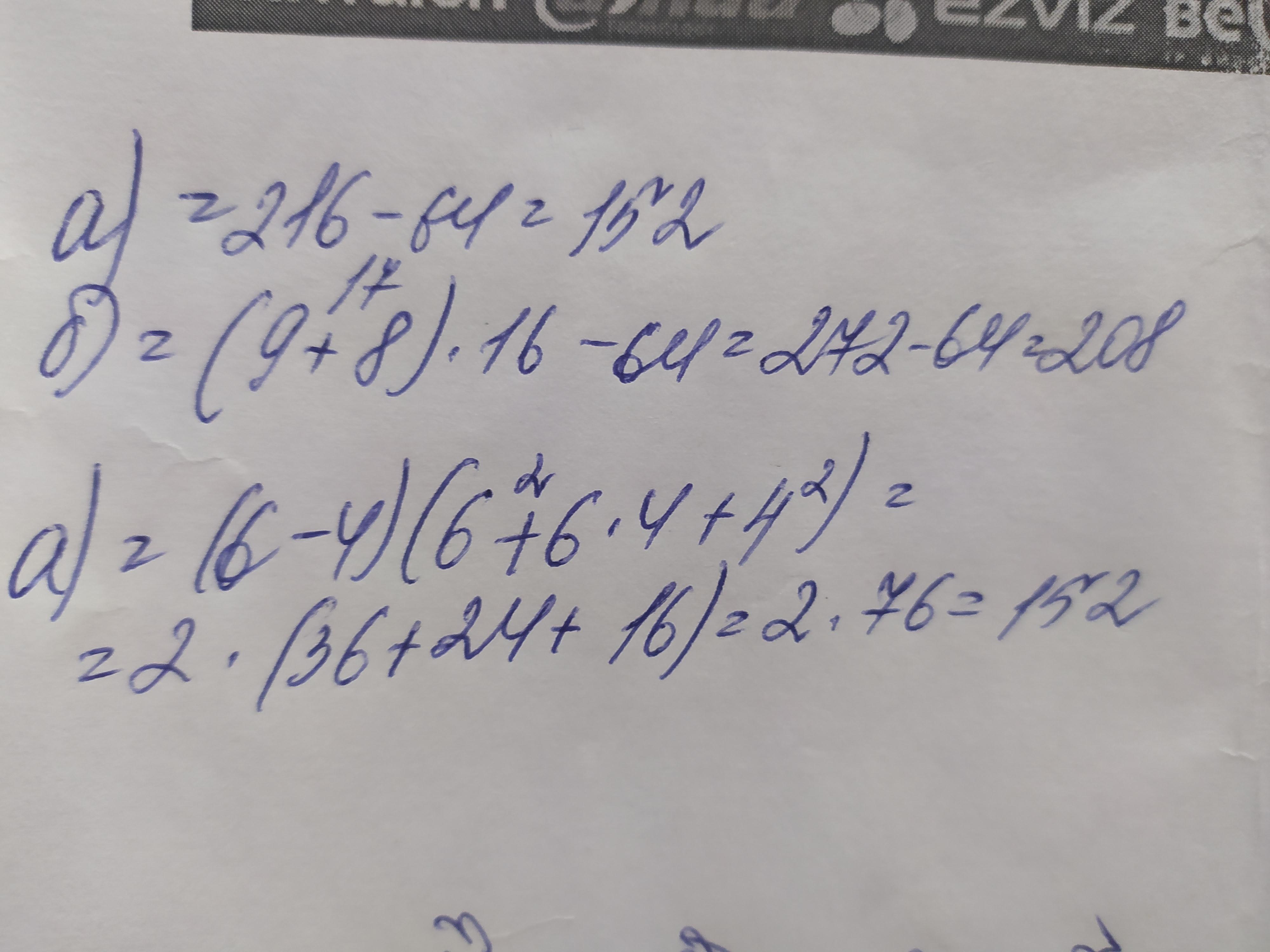 а) 6³-4³ = (2*3)³ - (2*2)³=2³(3³-2³)=8*(27-8)=8*19=152