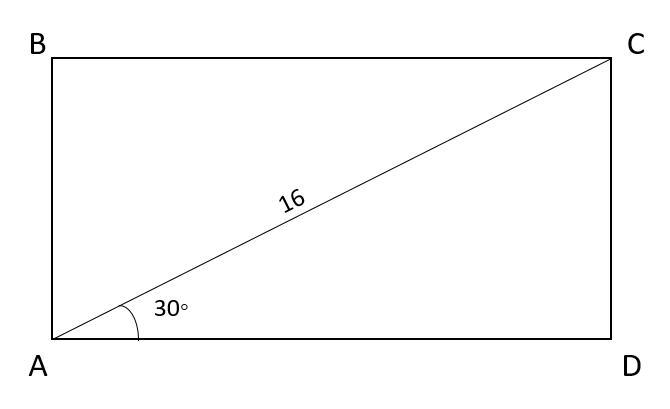 Дано: ΔABCD — прямокутник, AC = 16 см, ∠CAD = 30°