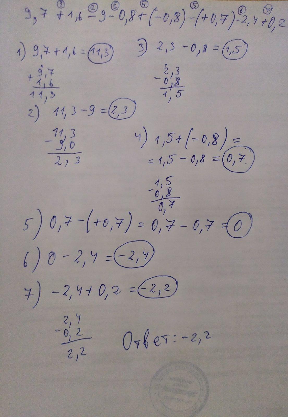 4) 1,5 + (-0,8) = 1,5 - 0,8 = 0,7