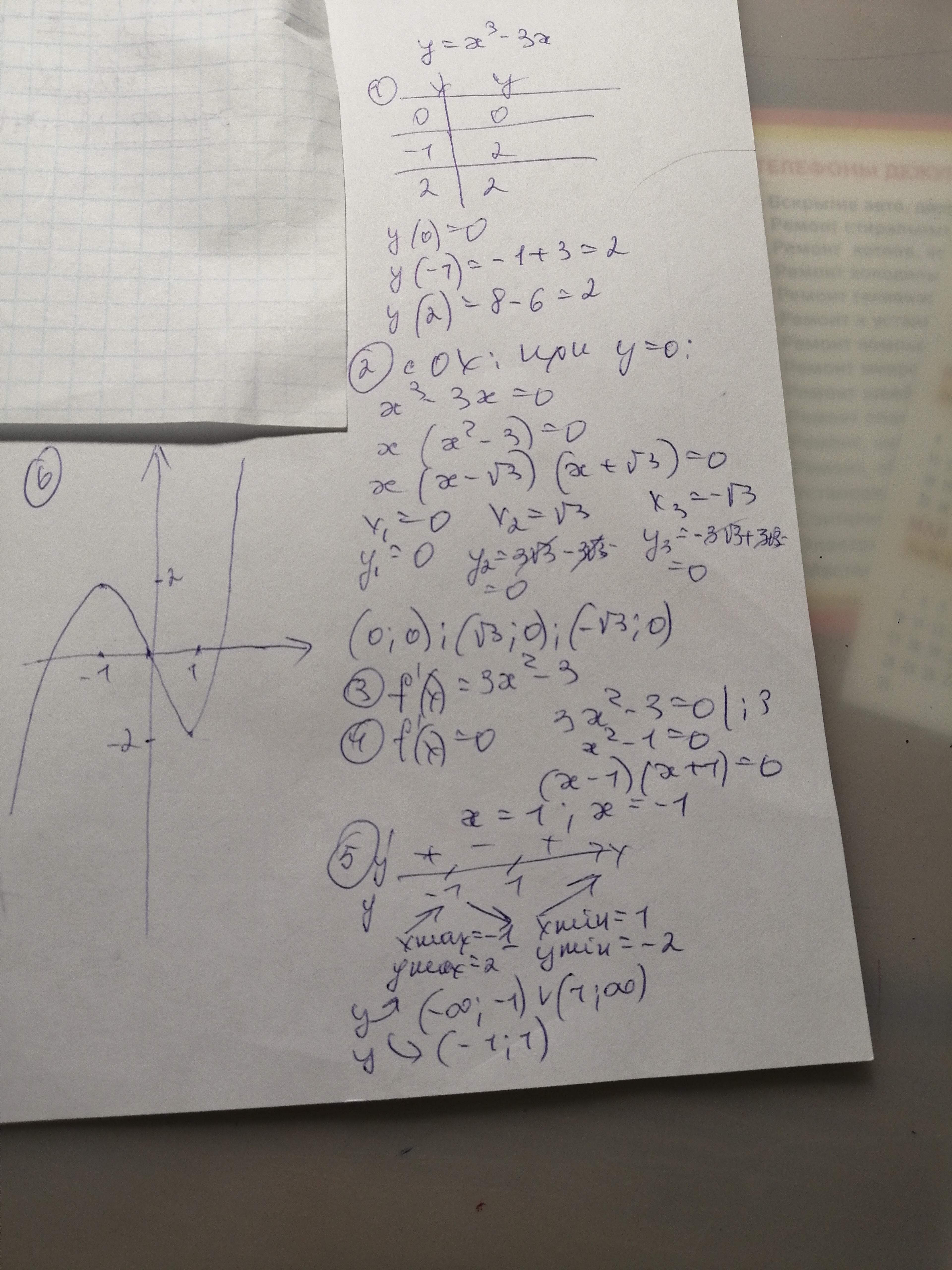 2. Определите и запишите координаты точек пересечения графика функции y = x³ – 3x с осью x.