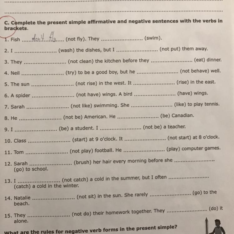 C. Complete the present simple affirmative and negative sentences with the verbs in