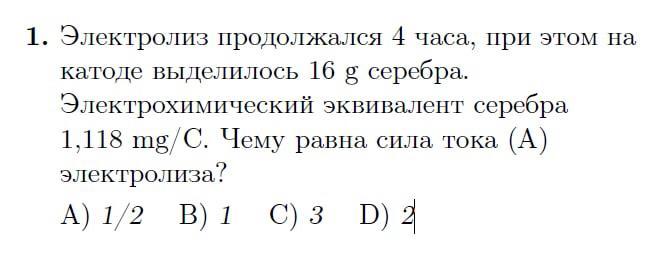А почему 1, а не 0,1 А? А граммы в кг не надо? У меня электролиз в пролете((