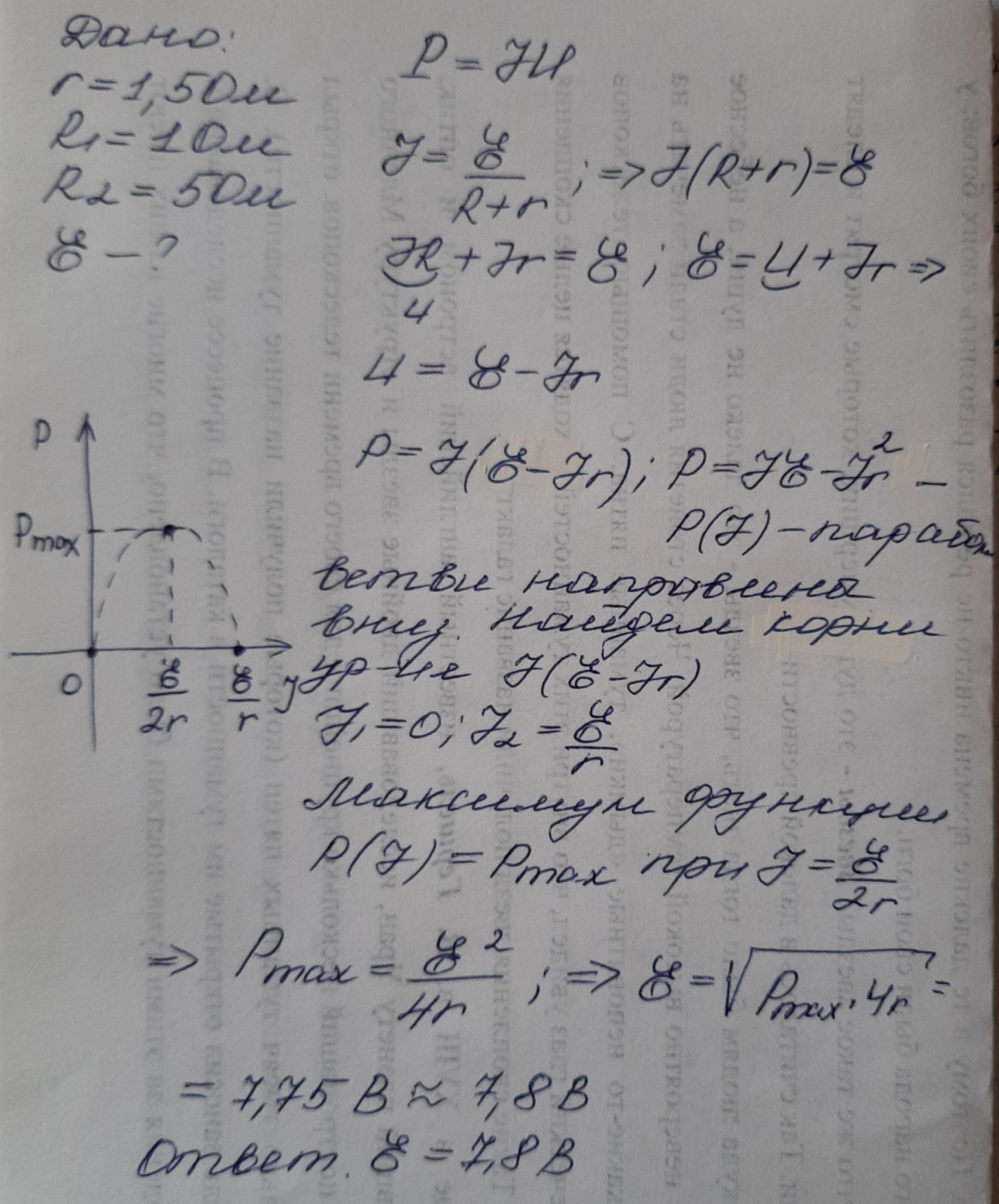 Е = iR+ir , и нам нужно срезе мощность найти i
