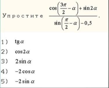 Упростить (cos((3p / 2) - a) + sin2a) / (sin((p / 2) - a) - 0.5)