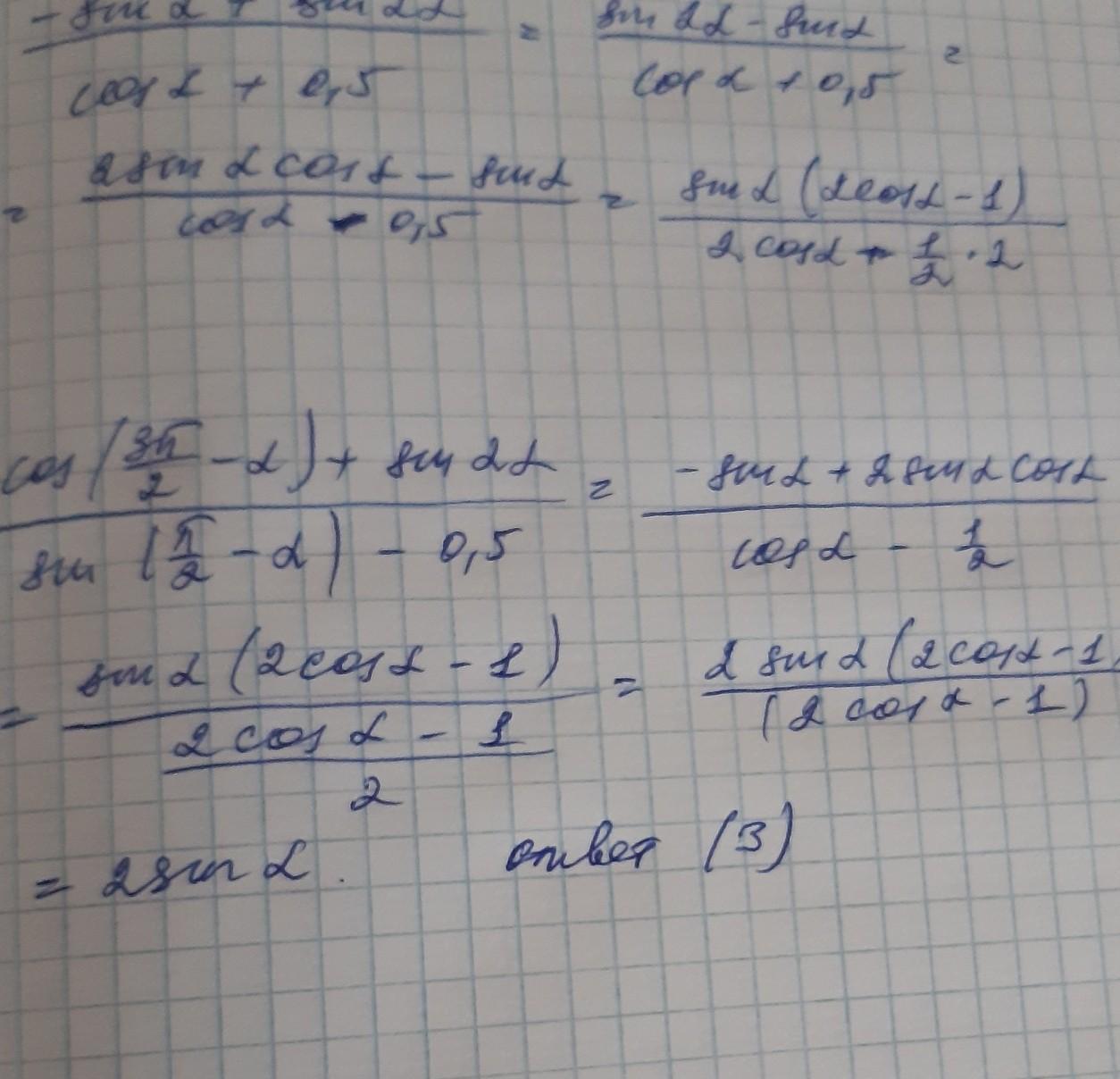 соs(3π/2-α)=-sina,sin(π/2-α)=сosa,sin2a=2sinacosa