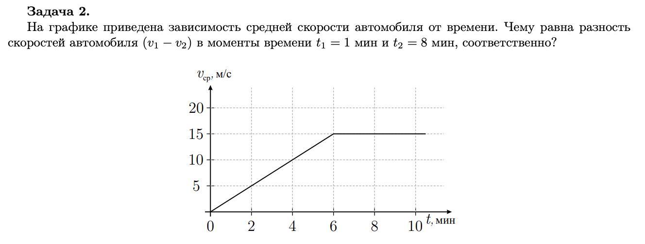 На графике приведена зависимость средней скорости автомобиля от времени. Чему равна разность