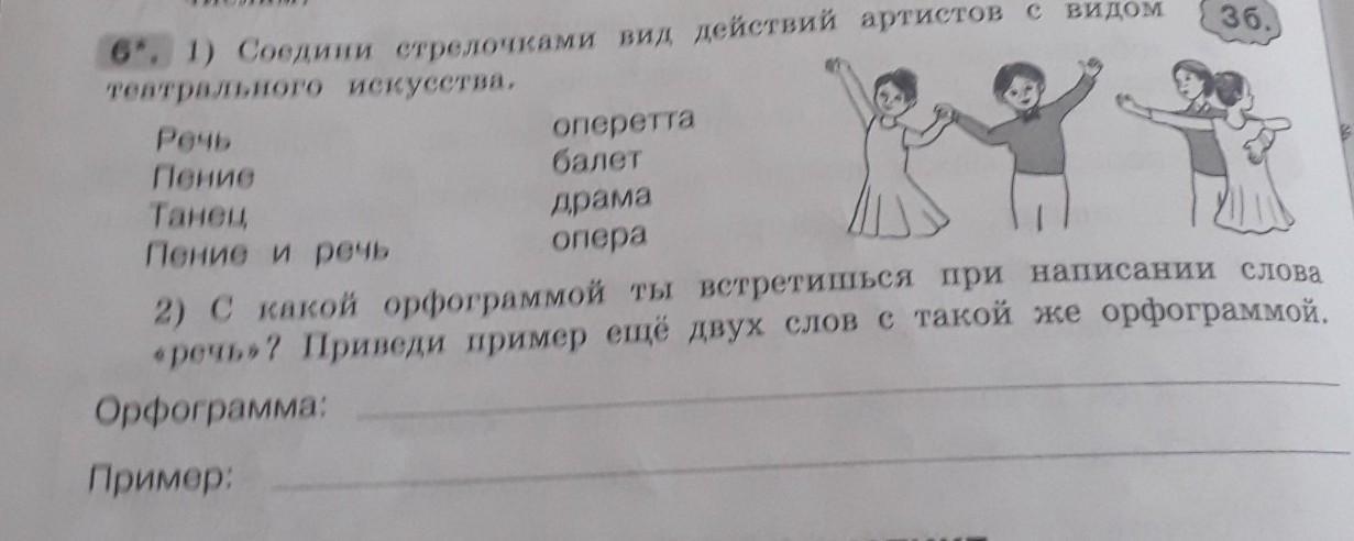 Соедини стрелочками вид действия артистов с видом театрального искусства.