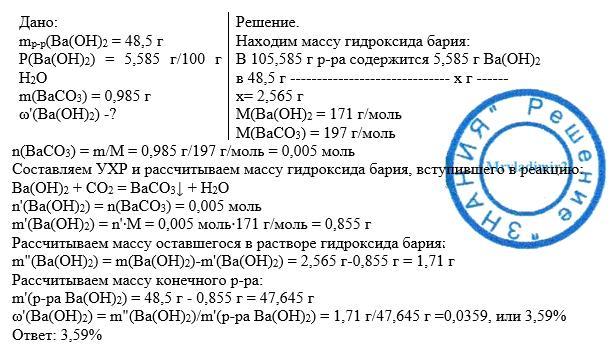 5.585г в 100г воды) пропустили углекислый газ, при этом выпало 0,985г осадка. Вычислите массовую долю вещества в полученном растворе.