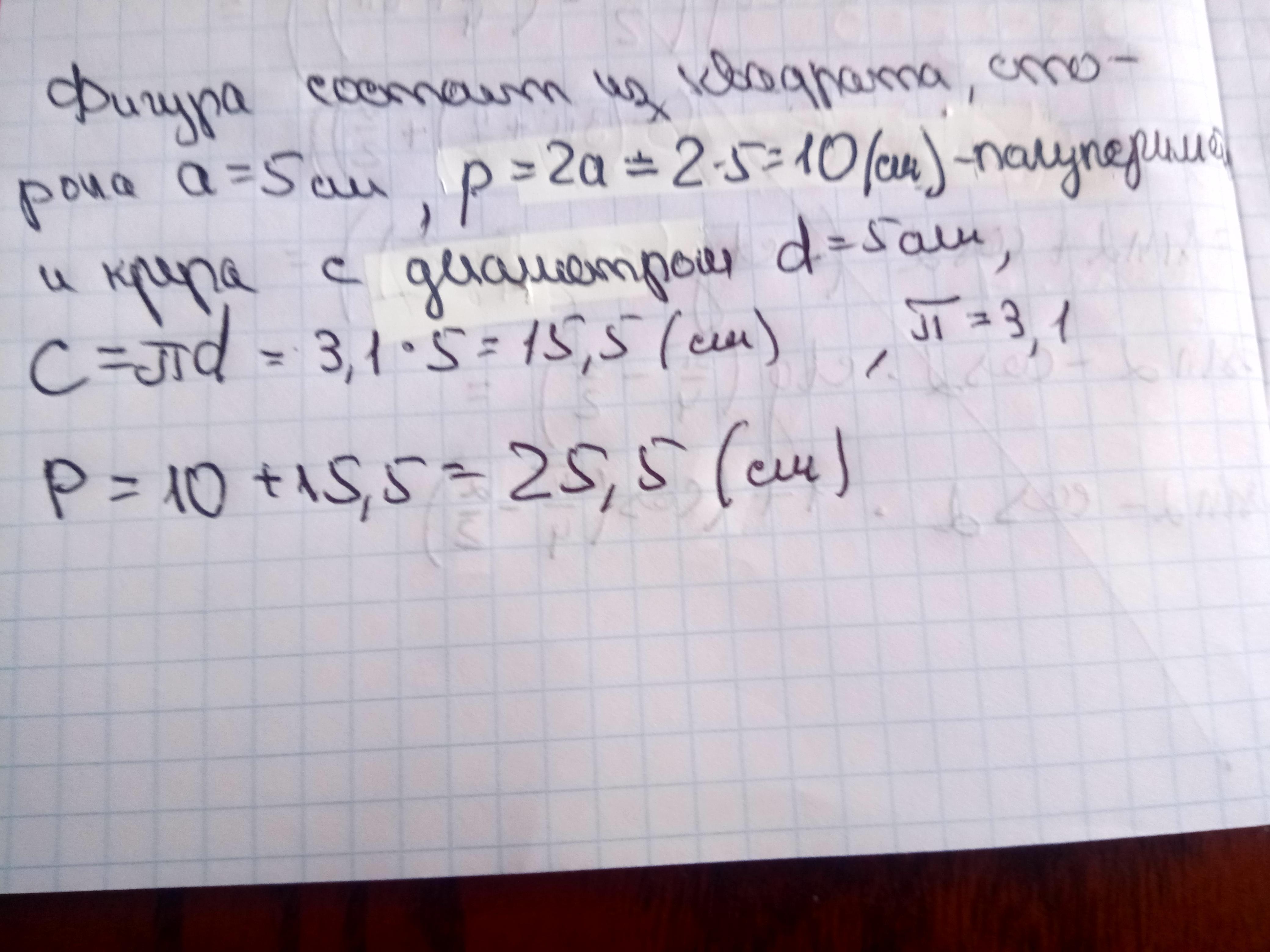 2 стороны квадрата входят в периметр фигуры, это уже 10 см