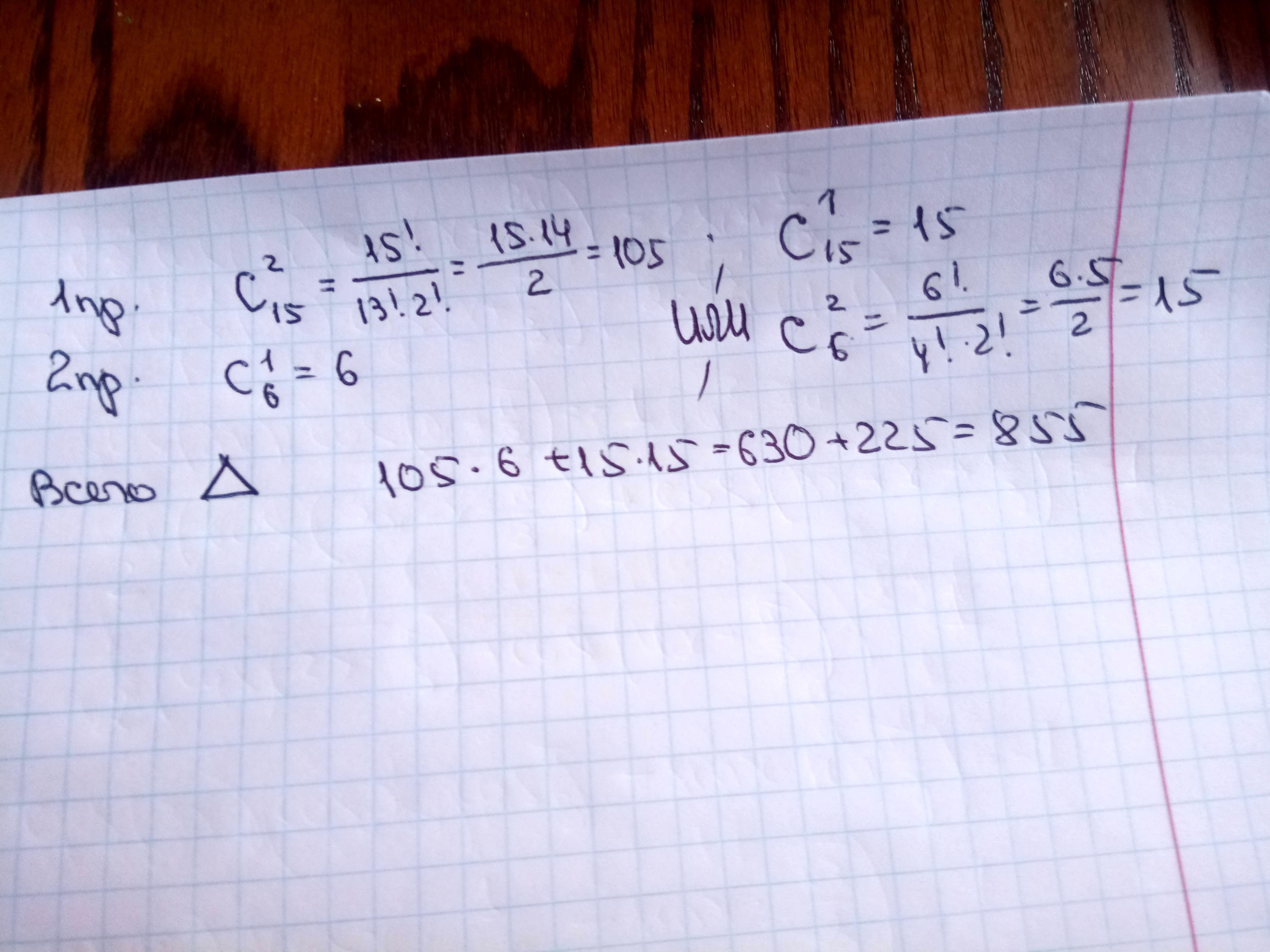 На прямой взяты 15 точек, а на параллельной ей прямой взяты 6 точки. Выясни, сколько существует различных треугольников, вершинами которых являются эти точки?