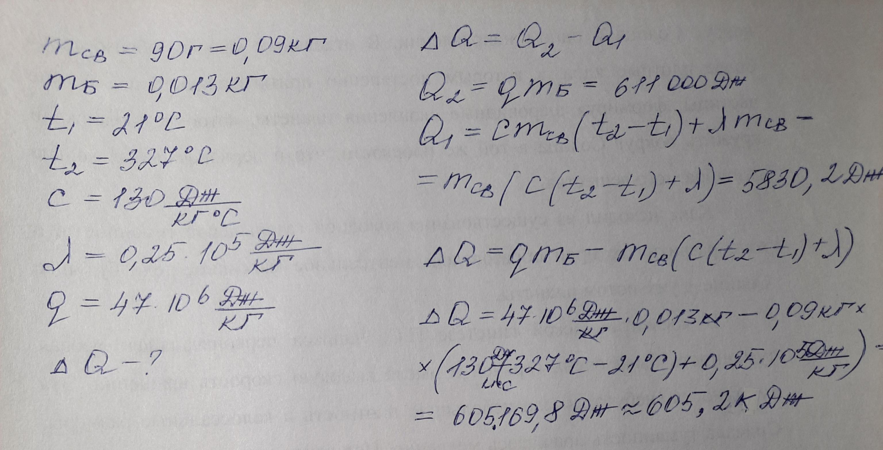 Удельная теплоёмкость свинца — 130 Джкг⋅°С, температура плавления свинца равна 327 °С, а удельная теплота плавления свинца — 0,25⋅105 Дж/кг, удельная теплота сгорания бензина — 47⋅106 Дж/кг.