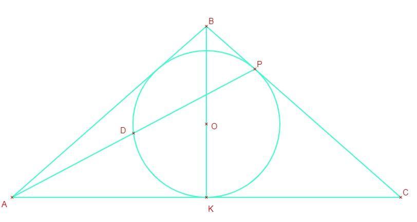 В равнобедренный треугольник ABC с основанием AC вписана окружность. Она касается стороны BC в точке P. Отрезок AP пересекает окружность точке D. Найдите площадь треугольника ABC, если известно, что AC =