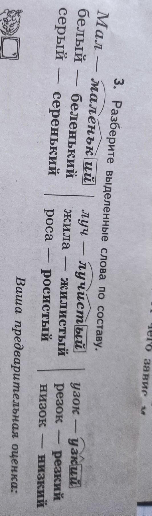 бел- корень; -еньк- суффикс; -ий окончание