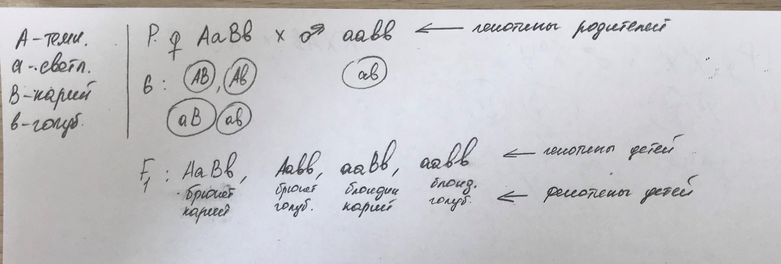 Дам 40 баллов. у человека тёмный цвет волос доминирует над светлым, карие глаза над голубым. запишите генотипы родителей,, возможные фенотипы и генотипы детей, родившихся от брака голубоглазого блондина и ДИГЕТЕРОЗИГОТНОЙ кареглазой брюнетки