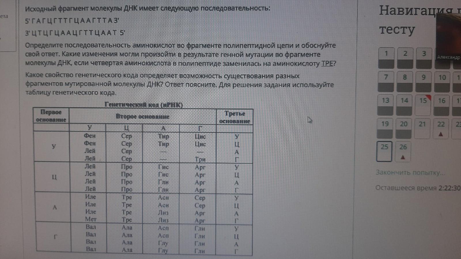 1) РНК - ЦУЦ ГЦА АЦГ УУЦ ААУ