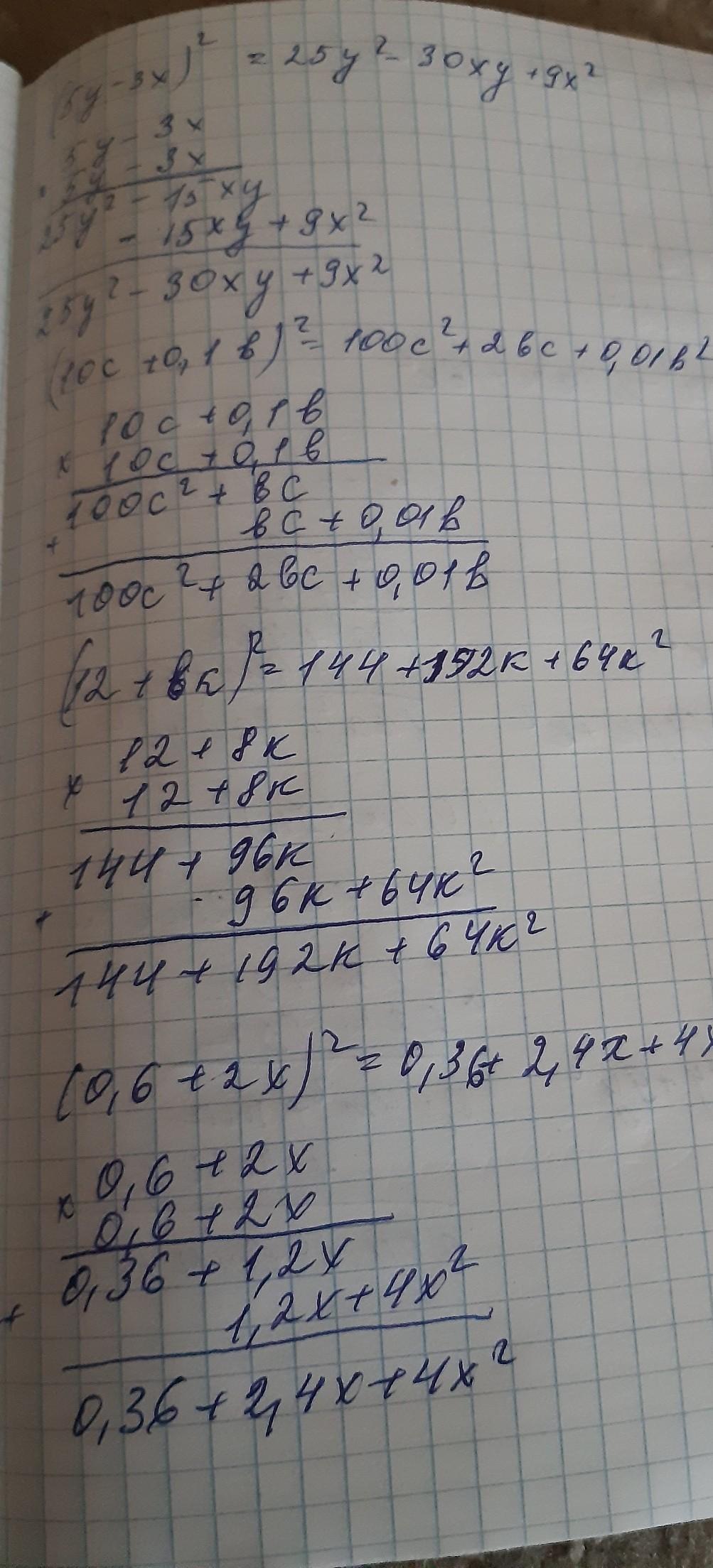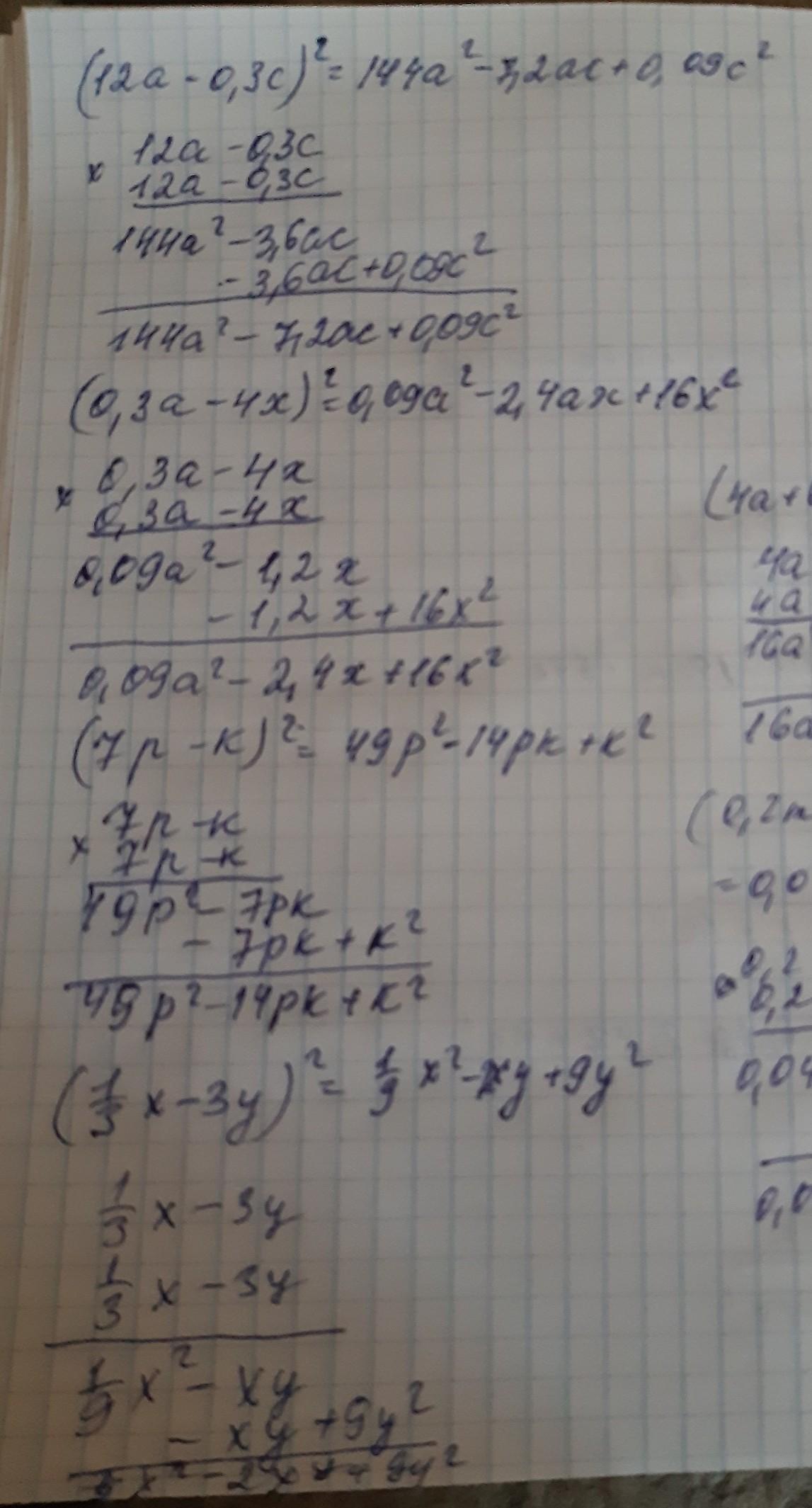и) ( 12a - 0,3c )²= 144a² - 7,2ac + 0,09c² ;